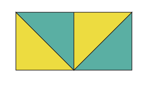 Mark a diagonal line on the wrong side of all yellow and orange squares and stitch on either side of the marked line, or use my HST Hack method to make 2 Half Square Triangles from each yellow/aqua and orange/aqua pair. Square up the HSTs to 2″.